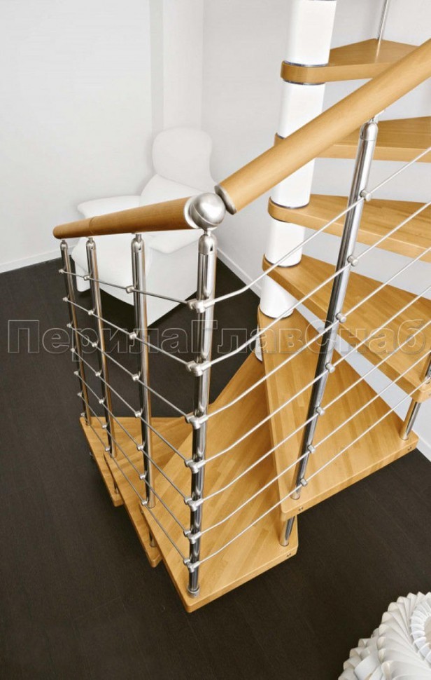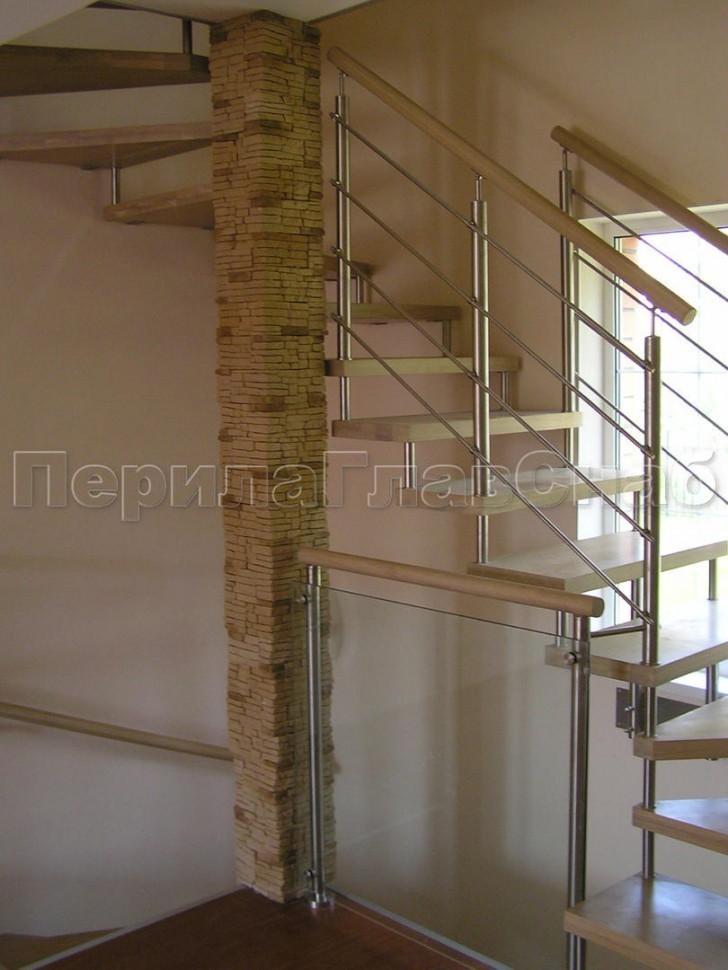 Ограждения со стойками в каждую ступень с круглым деревянным поручнем без ригелей