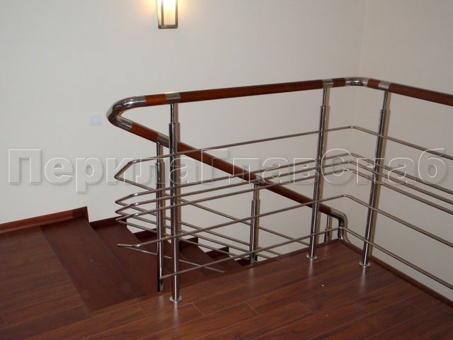 Четыре ригеля на сварке, круглый поручень и квадратные стойки