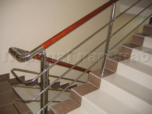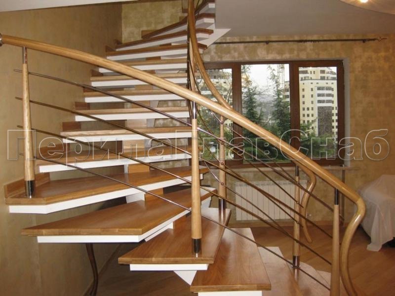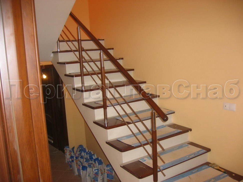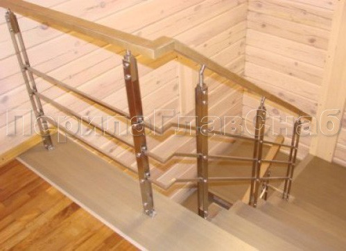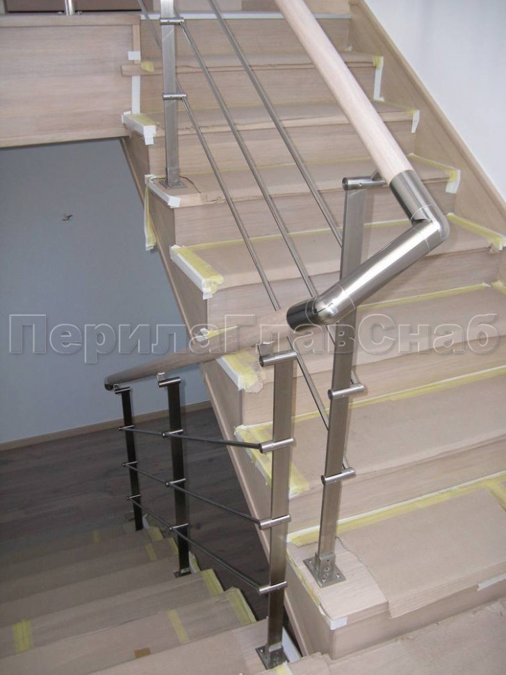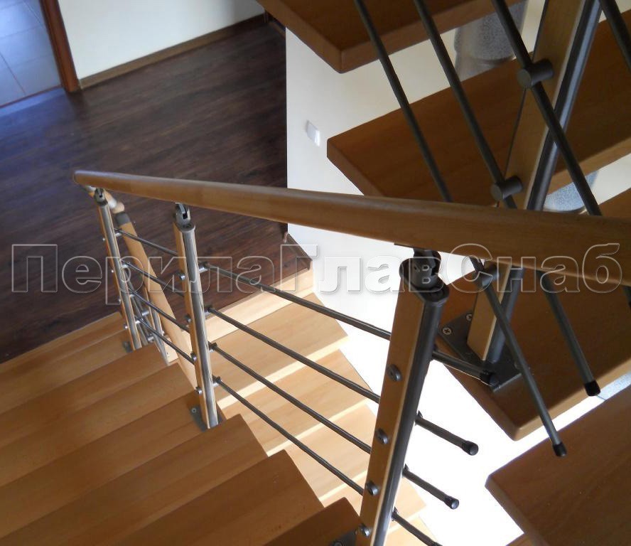 Записаться на встречу Два ригеля на держателях, круглый деревянный поручень и круглые стойки