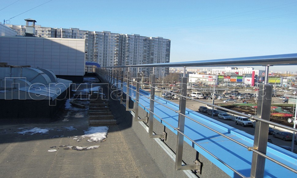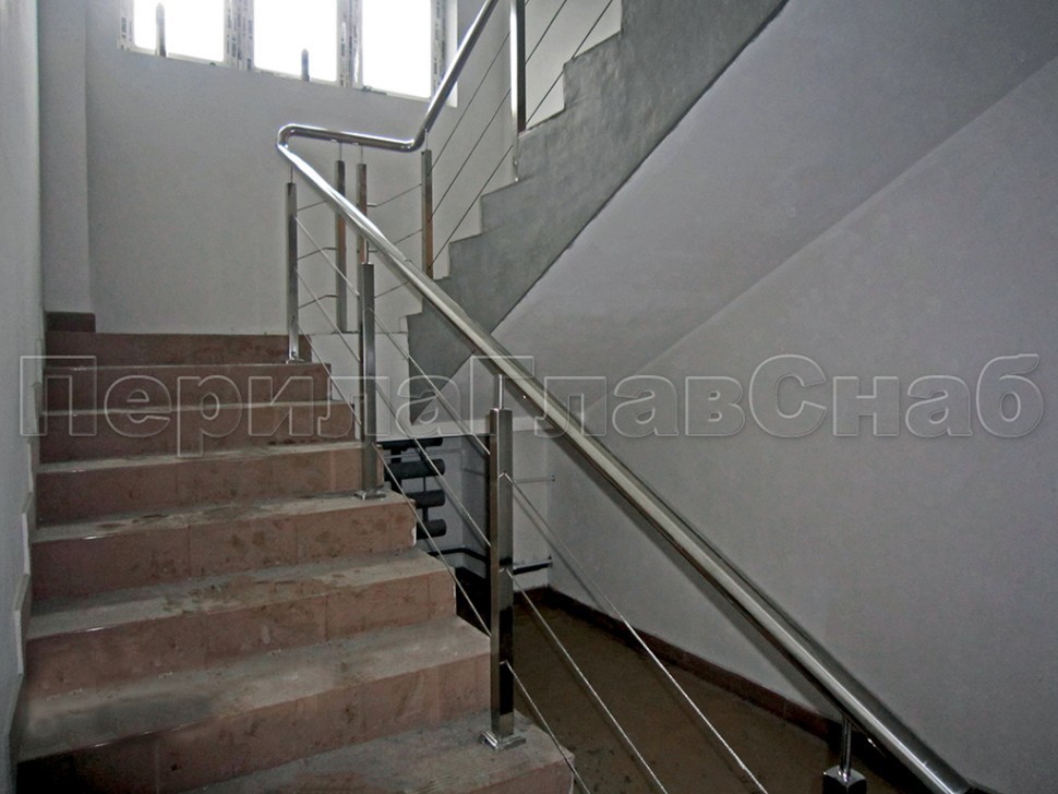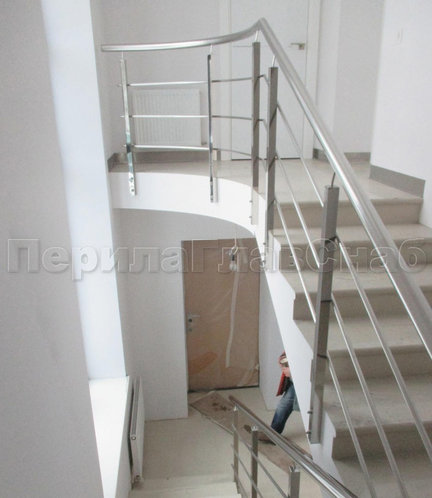 Записаться на встречу Два ригеля на держателях, круглый поручень и квадратные стойки