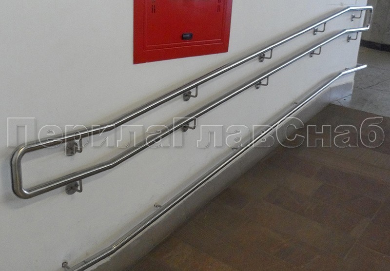 Такого рода ограждения чаще всего устанавливаются на входные группы магазинов и аптек. При установке двойных пристенных поручней на улицу рекомендуем использовать сталь AISI316L или, как минимум, 304 с улучшенной полировкой.