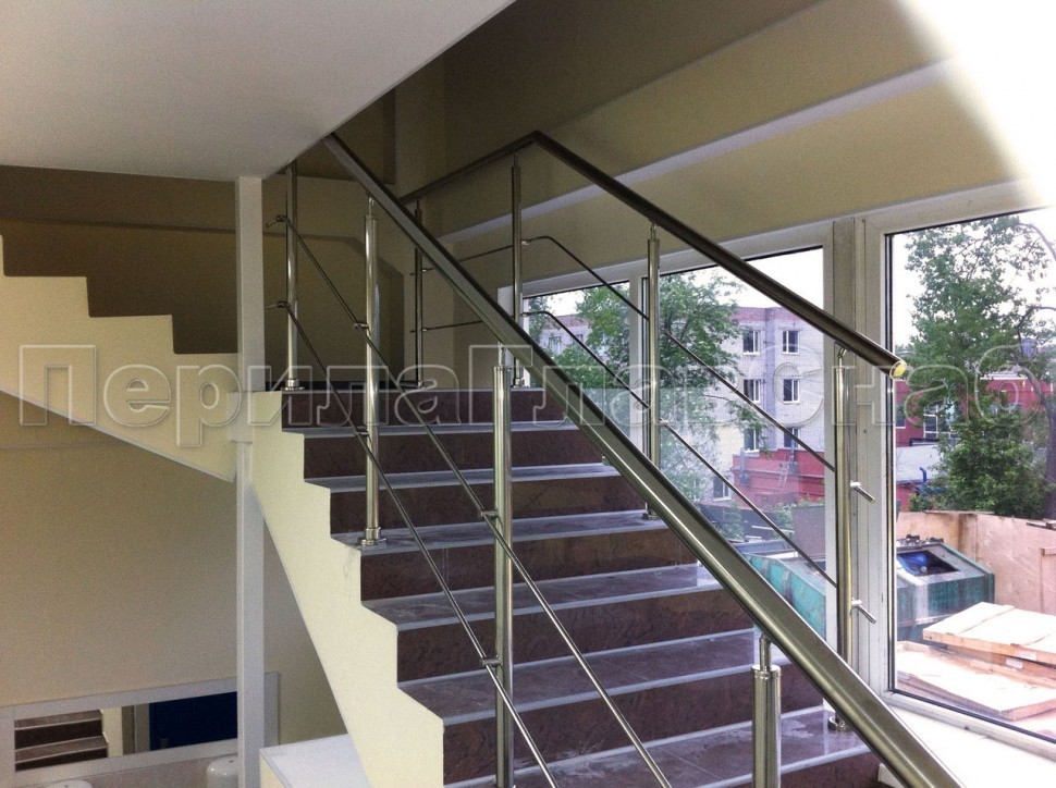 Ограждения из нержавейки. Заполнение из 3х тросиков. Квадратные стойки.
