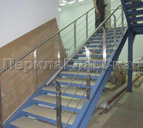 Четыре ригеля на сварке, квадратный поручень и круглые стойки