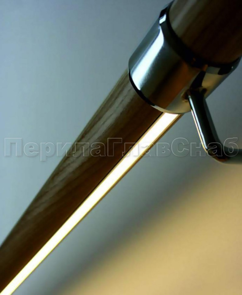 Четыре ригеля на держателях, квадратный деревянный поручень и стойки с деревянными вставками