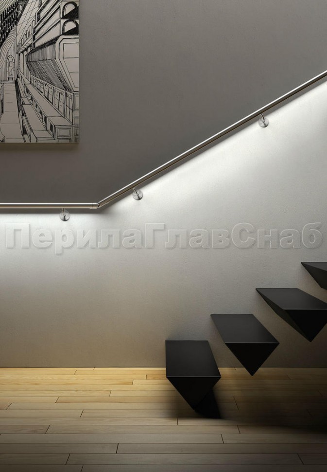Лестничное ограждение с тремя ригелями и поручнем из латуни