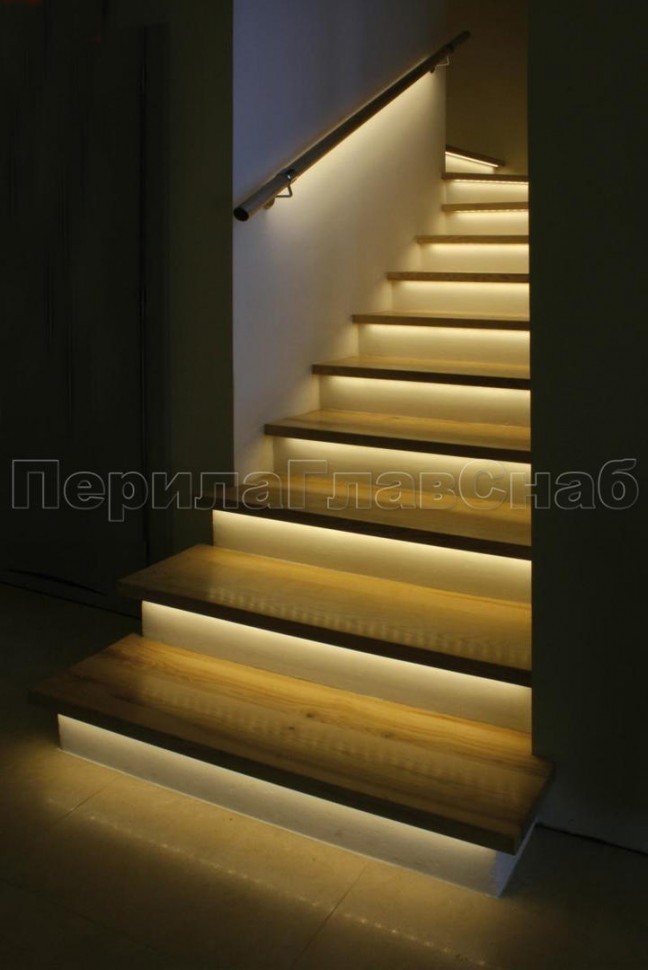 Ограждения с двумя стойками в каждую ступень с деревянным поручнем и без ригелей