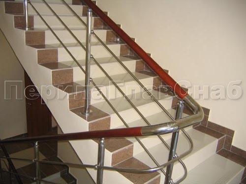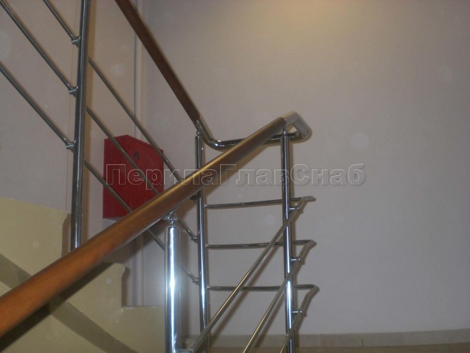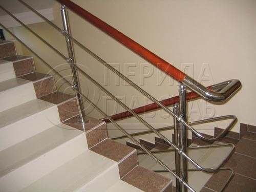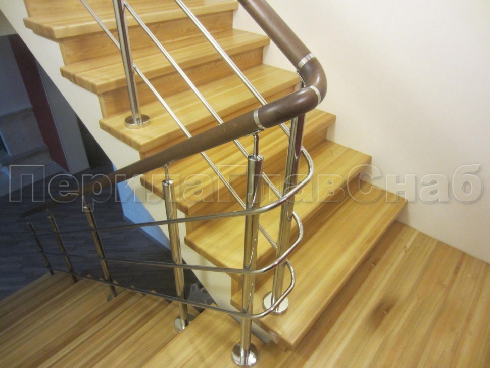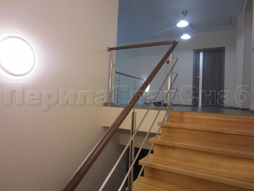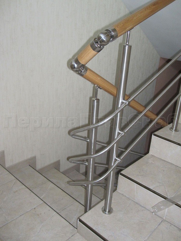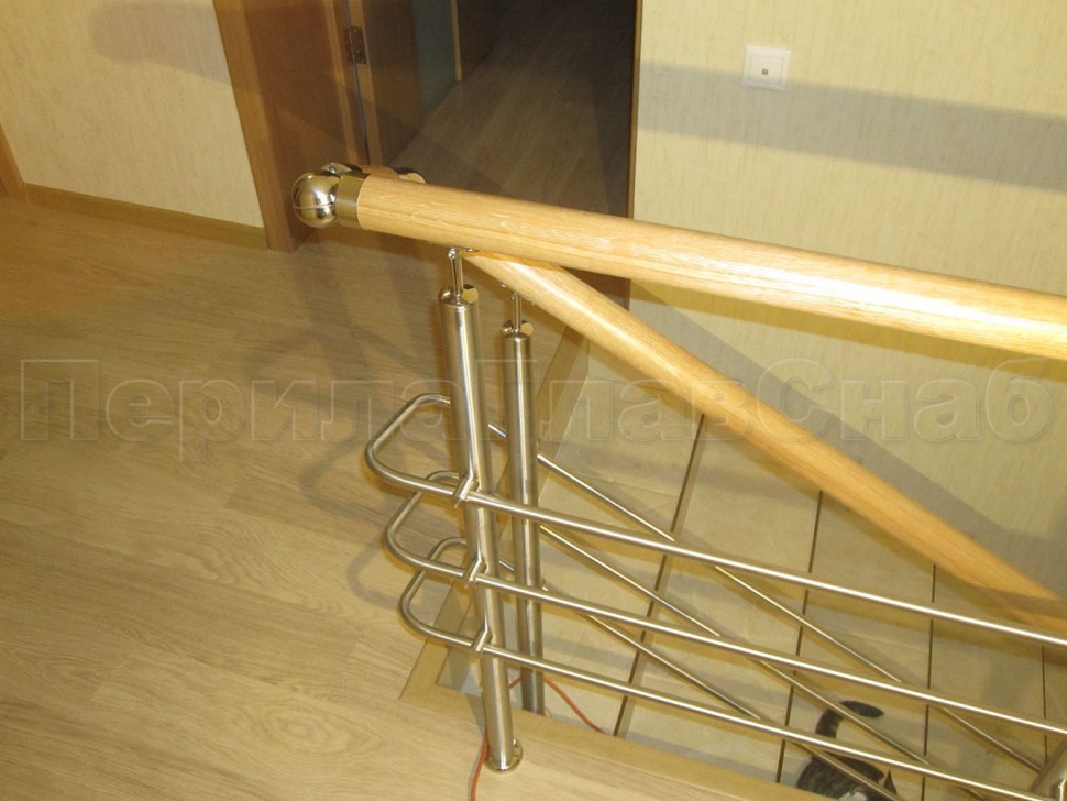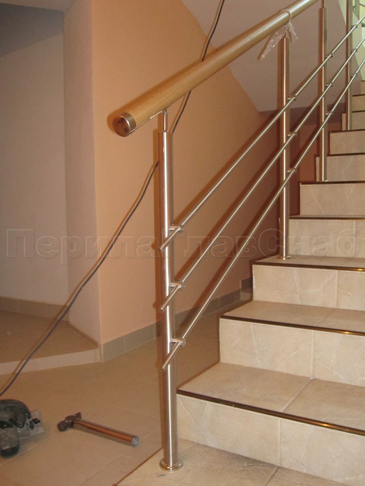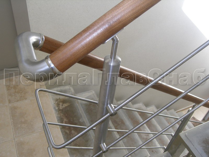 Нержавеющие ограждения без ригелей с круглым поручнем и стойками с деревянными вставками