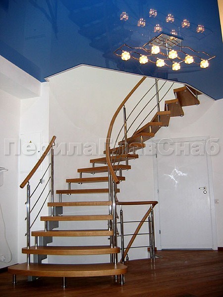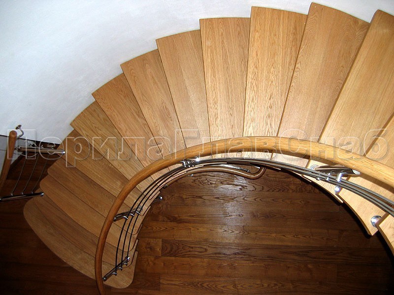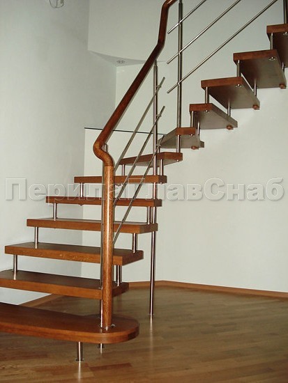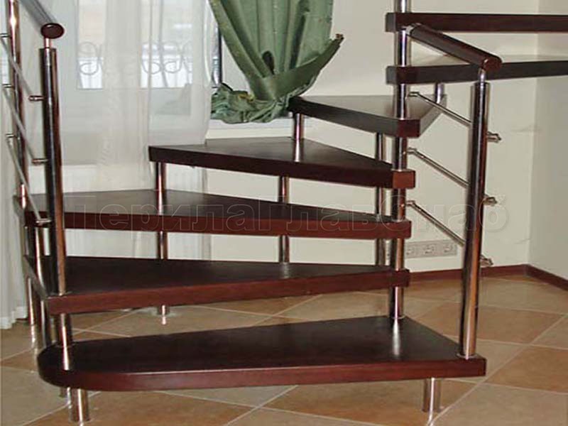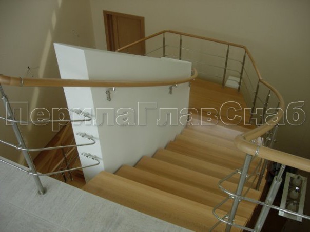 Ограждения со стойками в каждую ступень с круглым деревянным поручнем без ригелей