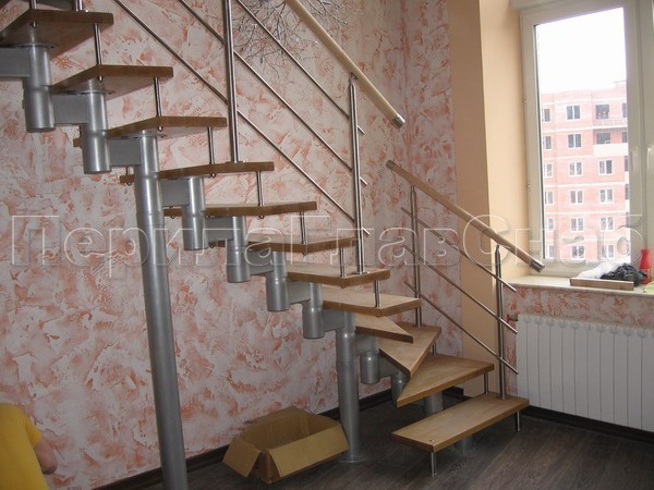 Четыре ригеля на сварке, квадратный поручень и круглые стойки