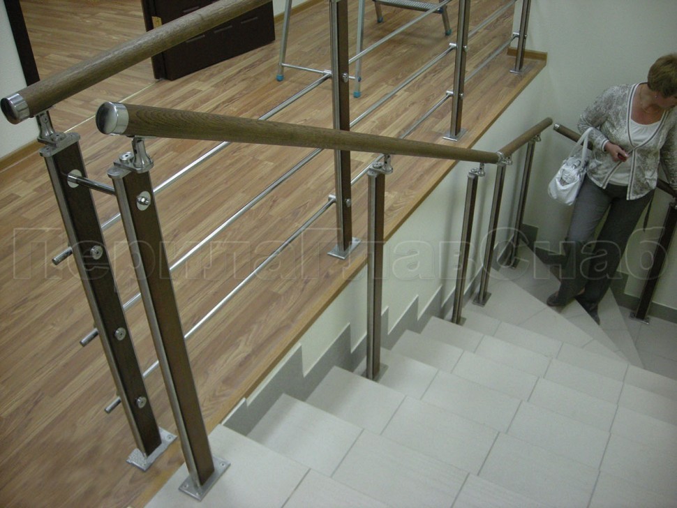 Нержавеющие ограждения без ригелей с квадратным поручнем и стойками с деревянными вставками