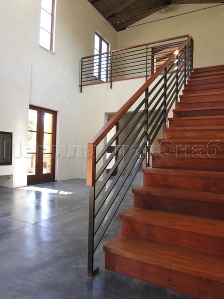 Ограждения с двумя стойками в каждую ступень с деревянным поручнем и без ригелей