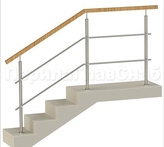 Три ригеля на сварке, квадратный деревянный поручень и круглые стойки