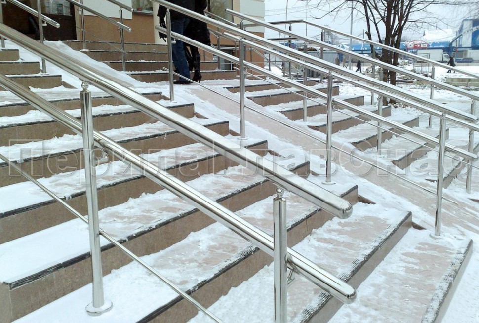 Нержавеющие ограждения с двойным поручнем без ригелей - вариант 2