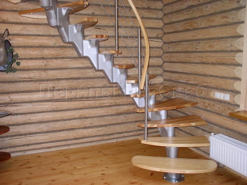 Ограждения со стойками в каждую ступень с круглым деревянным поручнем без ригелей