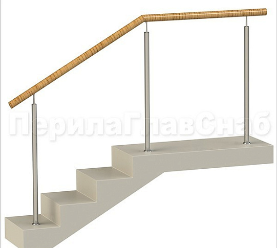 Ограждения с двумя стойками в каждую ступень с деревянным поручнем и без ригелей