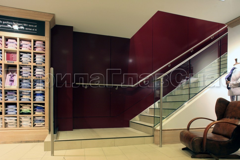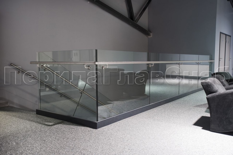 Ограждение с поручнем на выносе в зажимном профиле на лестнице
