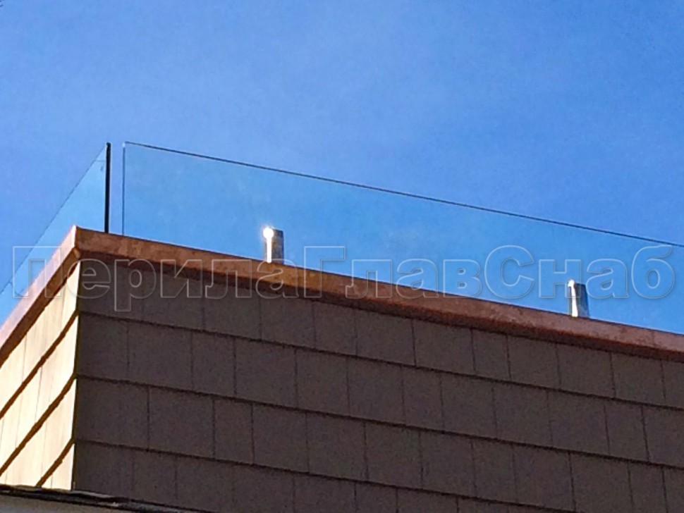 Несущая функция перераспределена между стеклом и стойками крепления. Высота ограждения может быть разной, в зависимости от высотности здания и наличия парапета (и его высоты).