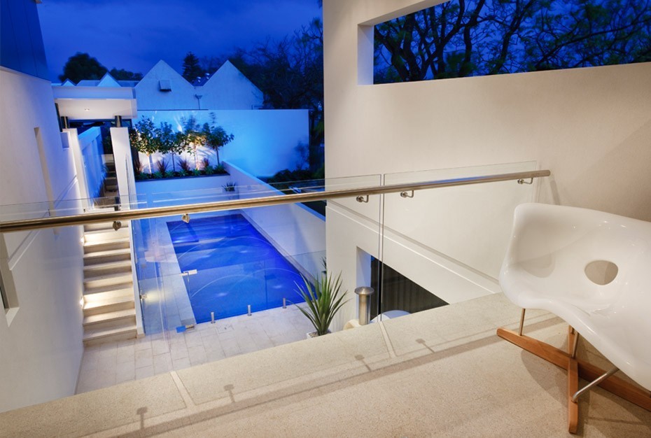 Ограждение без поручня на профиле на лестнице