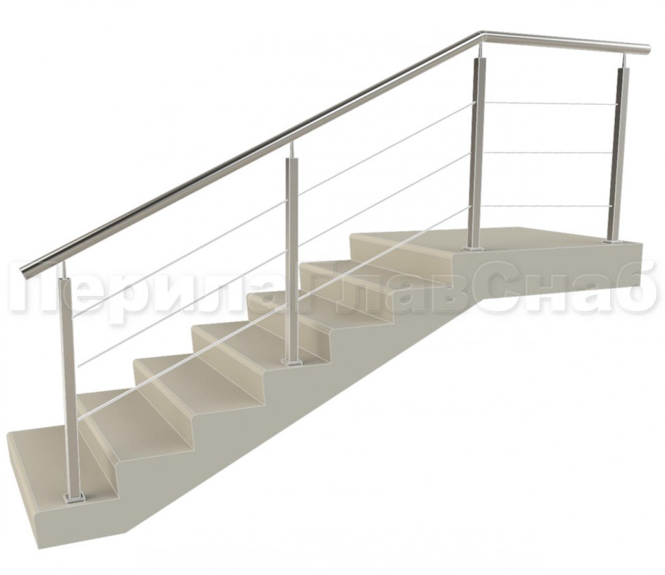 Записаться на встречу Ограждения из нержавейки. Заполнение из 3х тросиков. Квадратные стойки.