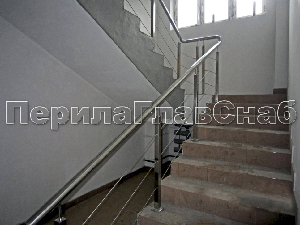 Ограждения из нержавейки. Заполнение из 4х тросиков. Квадратные стойки.