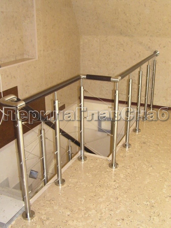 Ограждения из нержавейки. Заполнение из 7ми тросиков + декоративные наконечники
