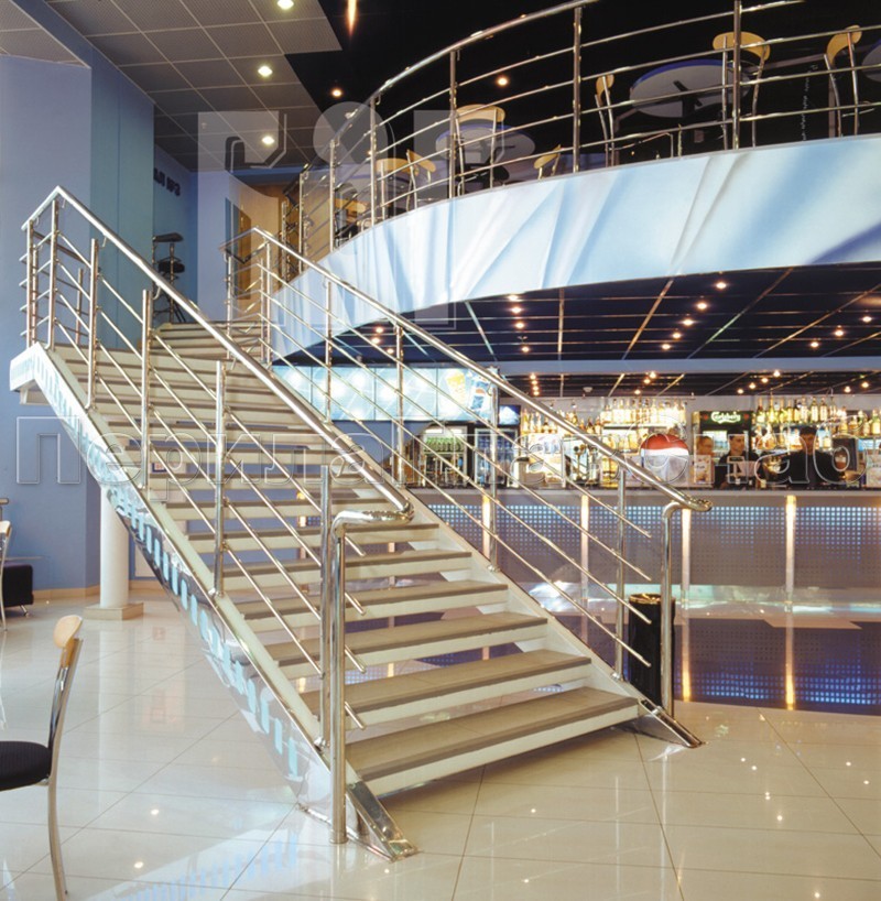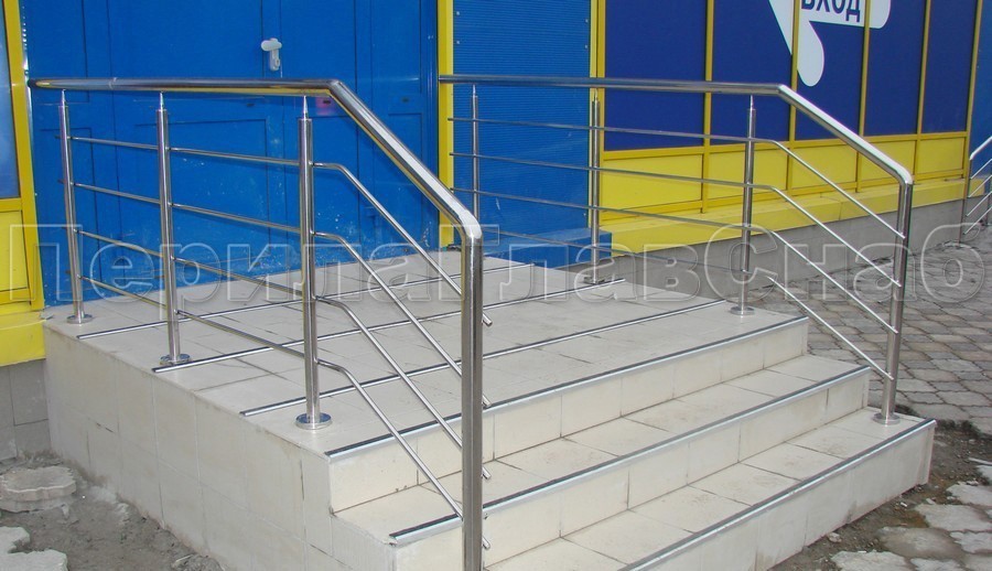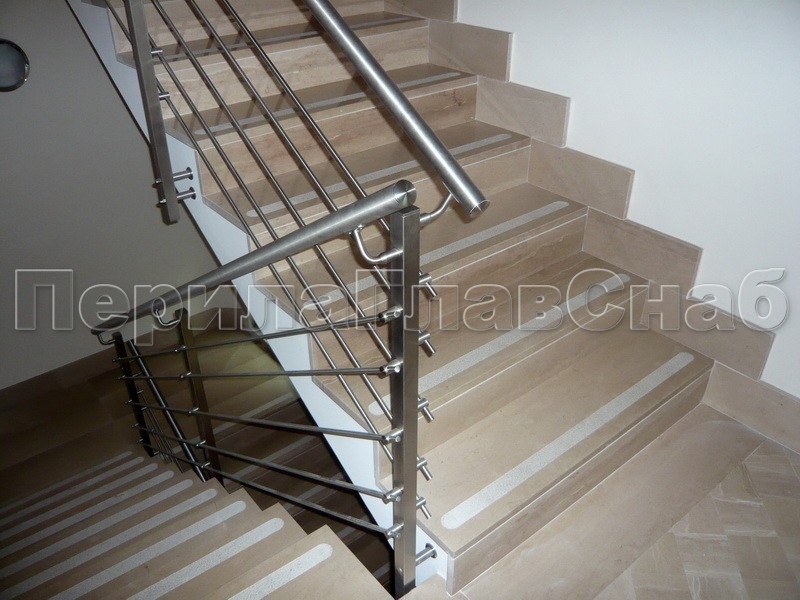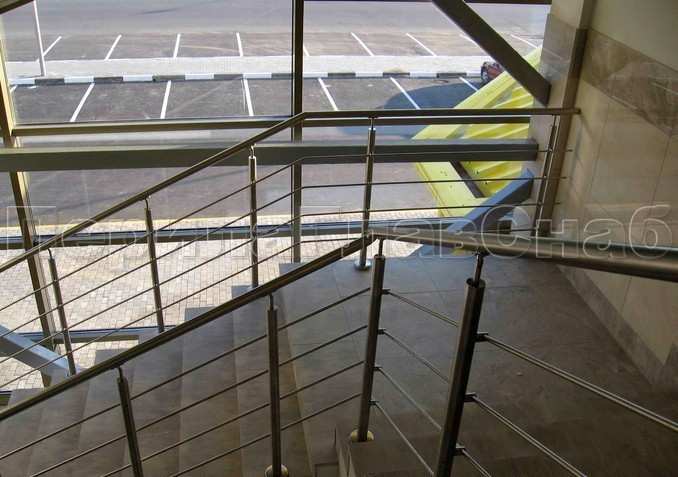 Записаться на встречу Четыре ригеля на держателях, квадратный поручень и круглые стойки