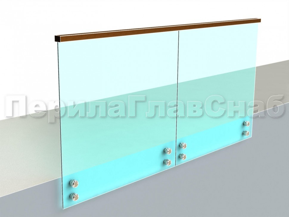 Ограждение с деревянным поручнем на точечном креплении