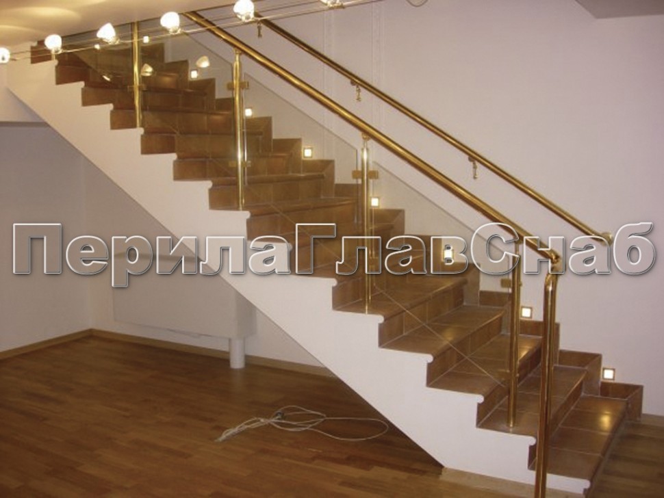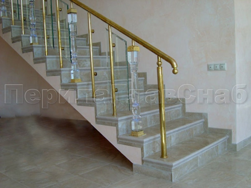 Лестничное ограждение с тремя ригелями и поручнем из латуни