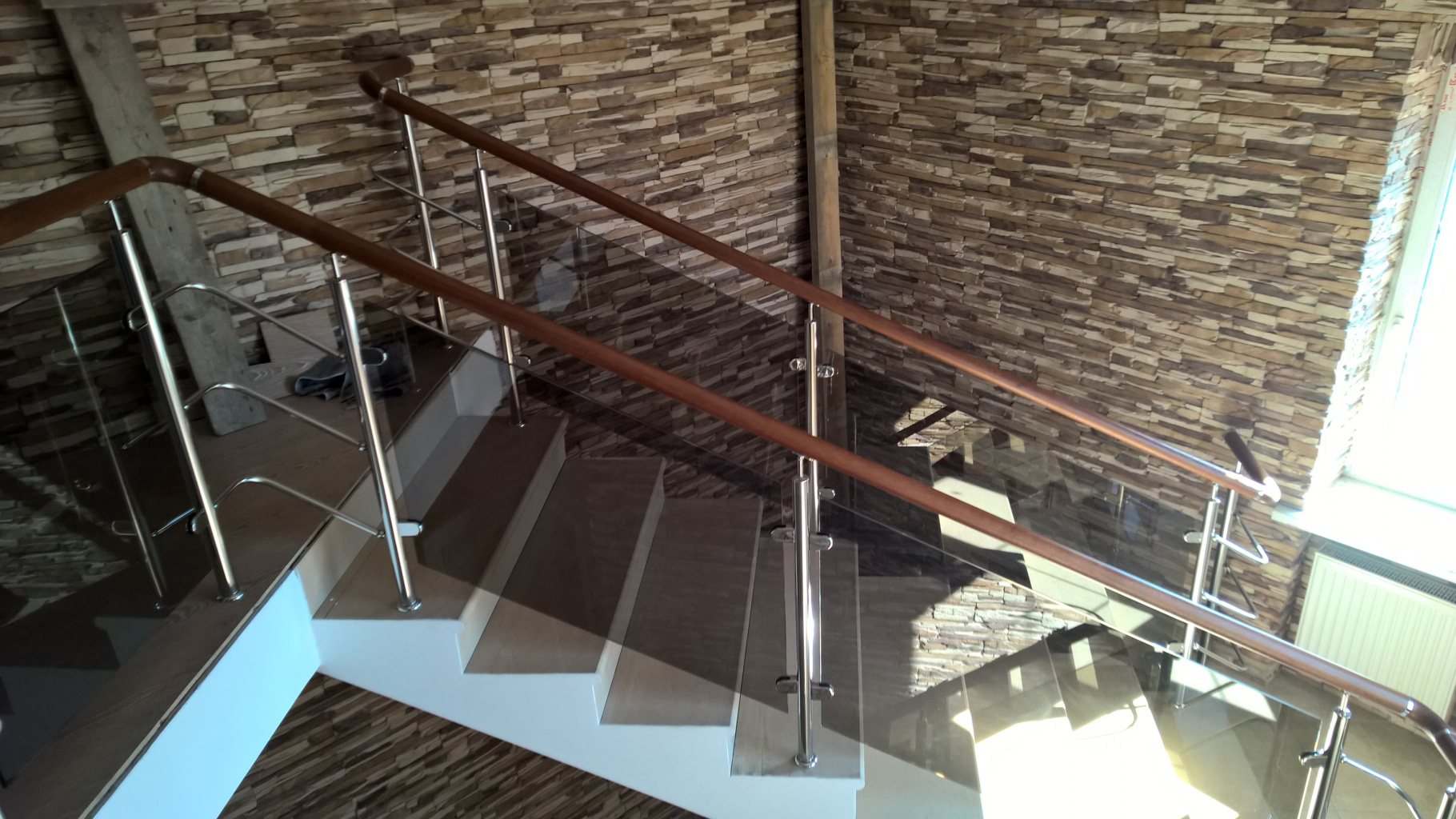 Ограждение с круглым деревянным поручнем с зажимными стеклодержателями и стойками с деревянными вставками в Уфе. Готовые проекты ПерилаГлавСнаб - фото 1 Ограждение с круглым деревянным поручнем с зажимными стеклодержателями и стойками с деревянными вставками в Уфе. Готовые проекты ПерилаГлавСнаб - фото 2