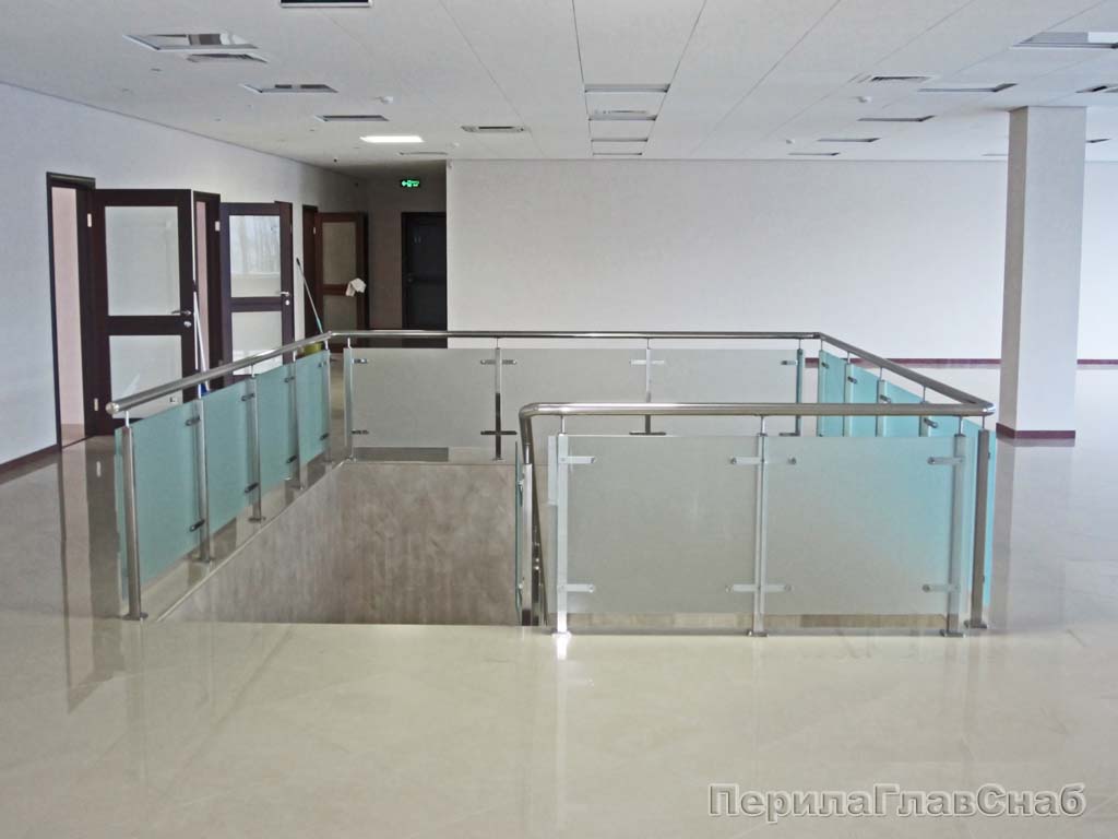 Ограждения лестницы без поручня с зажимными стеклодержателями и стойками