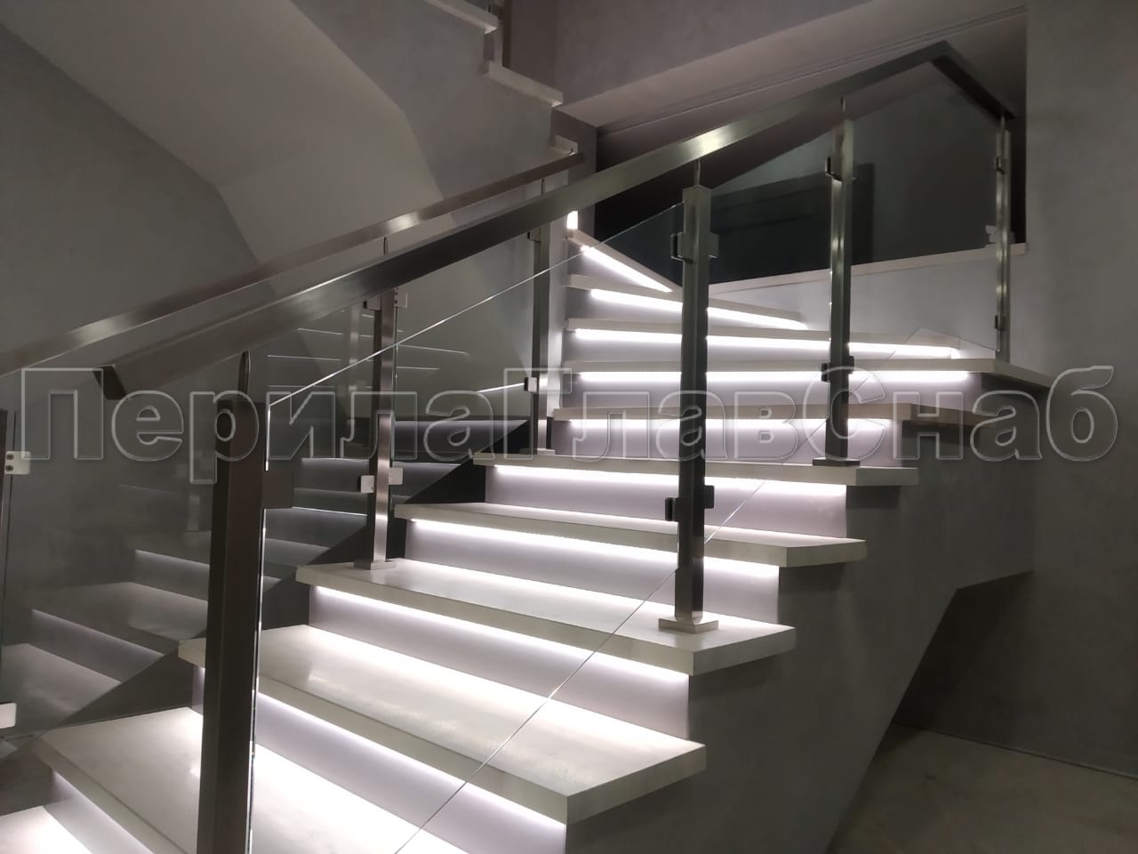 Ограждение для лестницы из нержавейки с зажимными стеклодержателями для крыльца в Уфе. Готовые проекты ПерилаГлавСнаб - фото 1 Ограждение для лестницы из нержавейки с зажимными стеклодержателями для крыльца в Уфе. Готовые проекты ПерилаГлавСнаб - фото 2