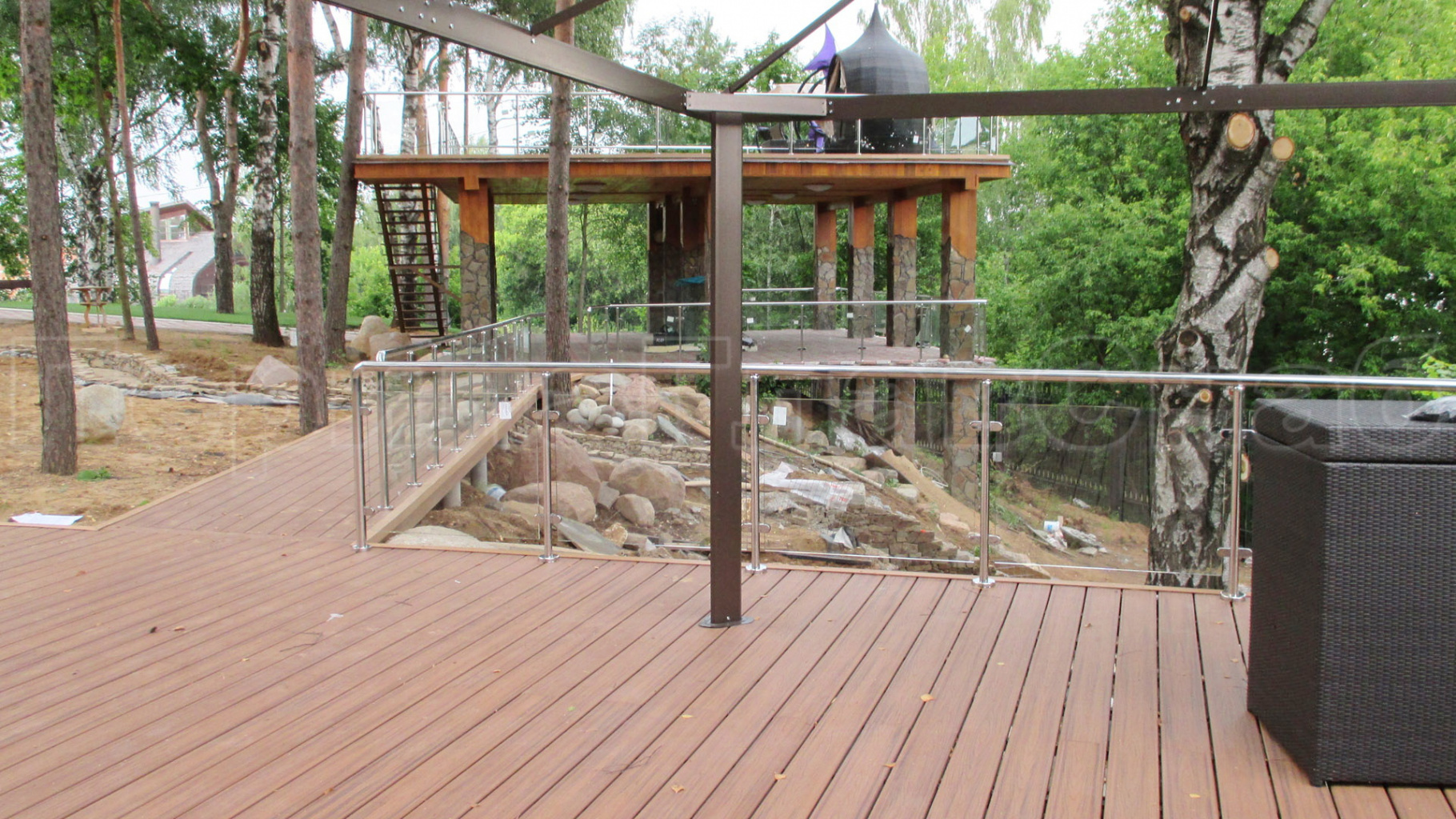Ограждение с деревянным поручнем с зажимными стеклодержателями и стойками в Уфе. Готовые проекты ПерилаГлавСнаб - фото 1 Ограждение с деревянным поручнем с зажимными стеклодержателями и стойками в Уфе. Готовые проекты ПерилаГлавСнаб - фото 2