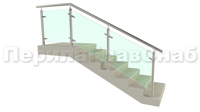 Ограждения лестницы без поручня с зажимными стеклодержателями и стойками