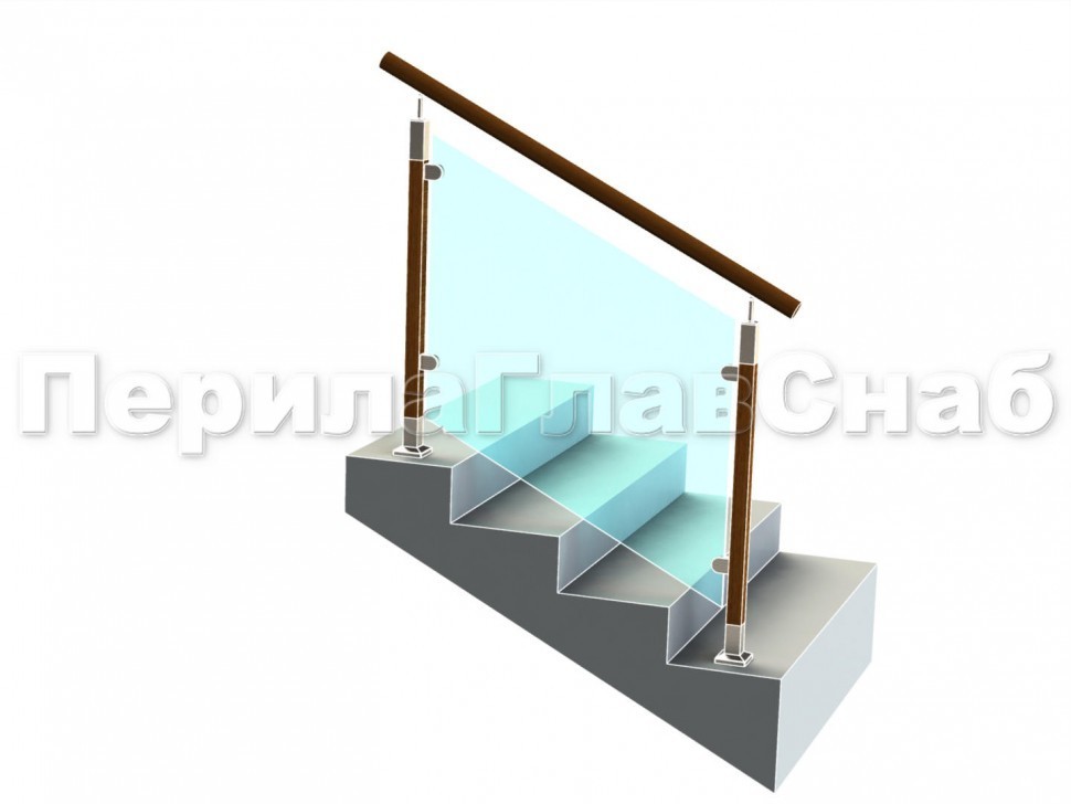 Ограждение лестницы с квадратными стойками и пластинчатыми стеклодержателями