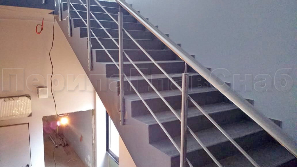 Три ригеля на держателях, круглый поручень и круглые стойки для крыльца в Уфе. Готовые проекты ПерилаГлавСнаб