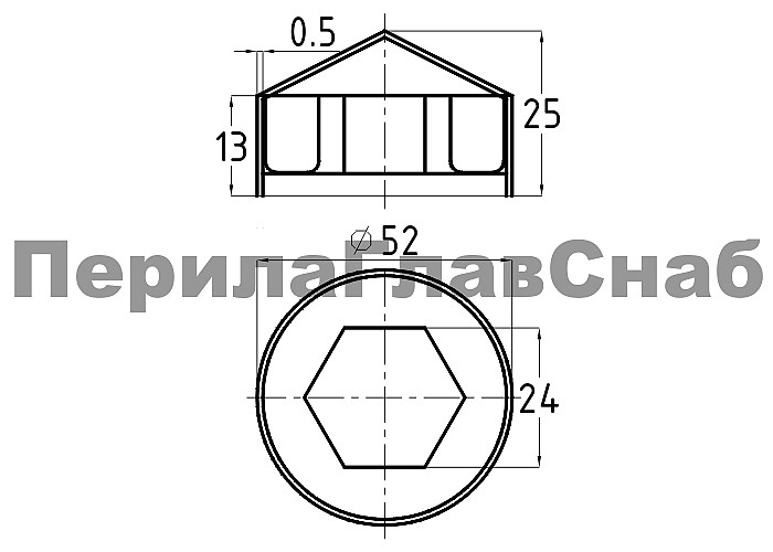 Крышка надевается на стандартную гайку М16 и закрывает торец трубы Ø50.8 мм.