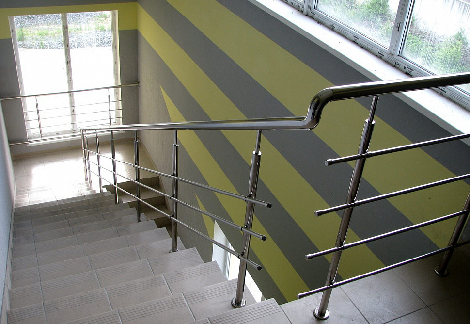 Согласно СНиП 2.08.02-89, на лестничных площадках и пролетах должны присутствовать специальные ограждения. Такие конструкции оснащаются поручнями. В учреждениях, предназначенных для обучения детей младшего возраста, высота перил не может превышать 1,2 метра. Ширина просвета между элементами таких конструкций должна составлять не более 0,1 метра.