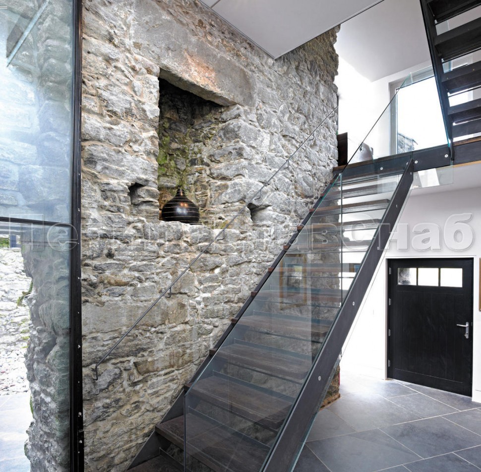 Ограждения лестницы без поручня с зажимными стеклодержателями и стойками