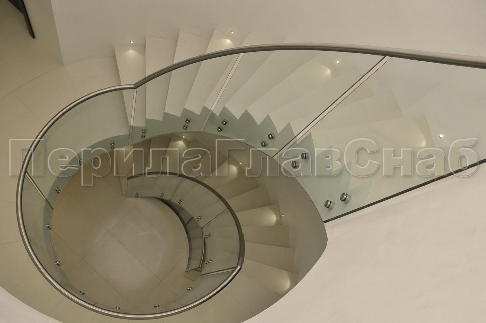 Стеклянные ограждения винтовой лестницы и баллюстрады