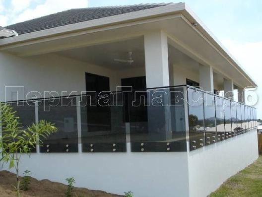Данный тип ограждений в своей конструкции стоек не содержит. Несущие функции выполняет толстое каленое стекло.