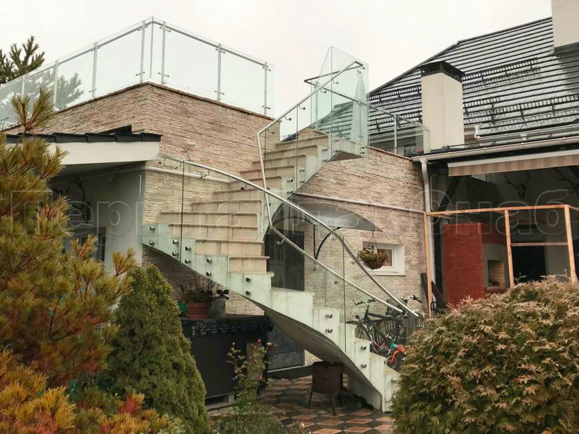 Ограждения из нержавейки со стеклом в Уфе. Готовые проекты ПерилаГлавСнаб