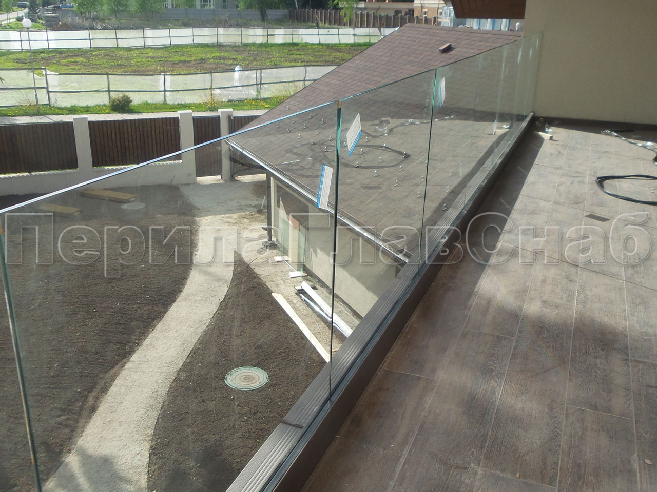 Стекло может быть установлено в зажимной алюминиевый профиль. Для стекол разной толщины и высоты мы разработали и изготовили собственные запатентованные системы зажимных профилей, которые выдерживают нагрузки до 5кН согласно СП 20.13330.2016. Для вас это означает, что установленные «ПерилаГлавСнаб» стеклянные ограждения будут соответствовать строительным нормам безопасности эксплуатации.