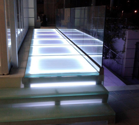 Стеклянное перекрытие из матового стекла на внутреннем балконе