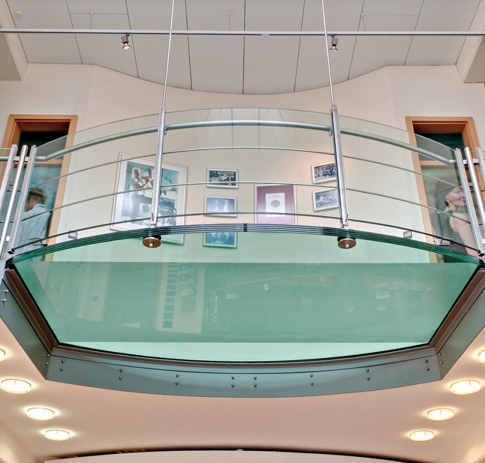 Стеклянное перекрытие из матового стекла на внутреннем балконе