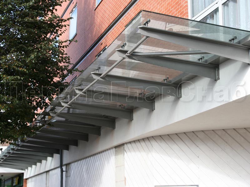 Стеклянный консольный навес на Г-образном каркасе - вариант 2