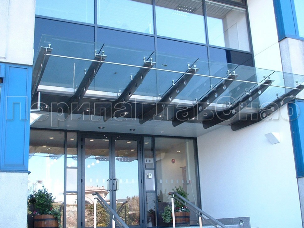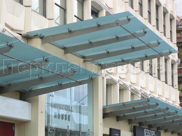 Стеклянный козырек на консоли из трубы