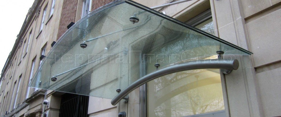 Записаться на встречу Стеклянный козырек на вантах