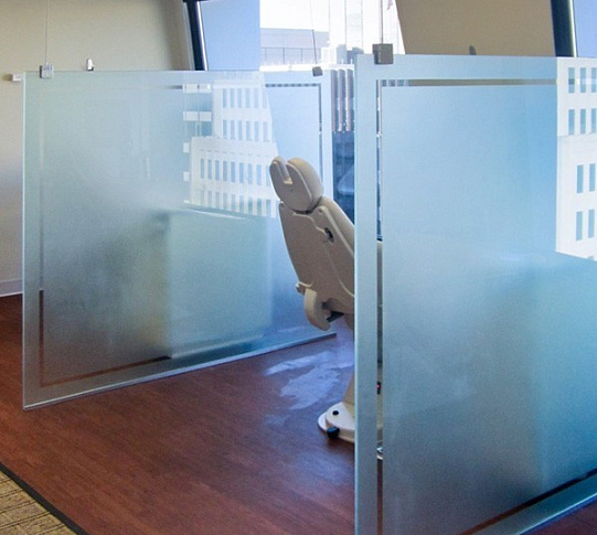 Стелянные перегородки без дверей.