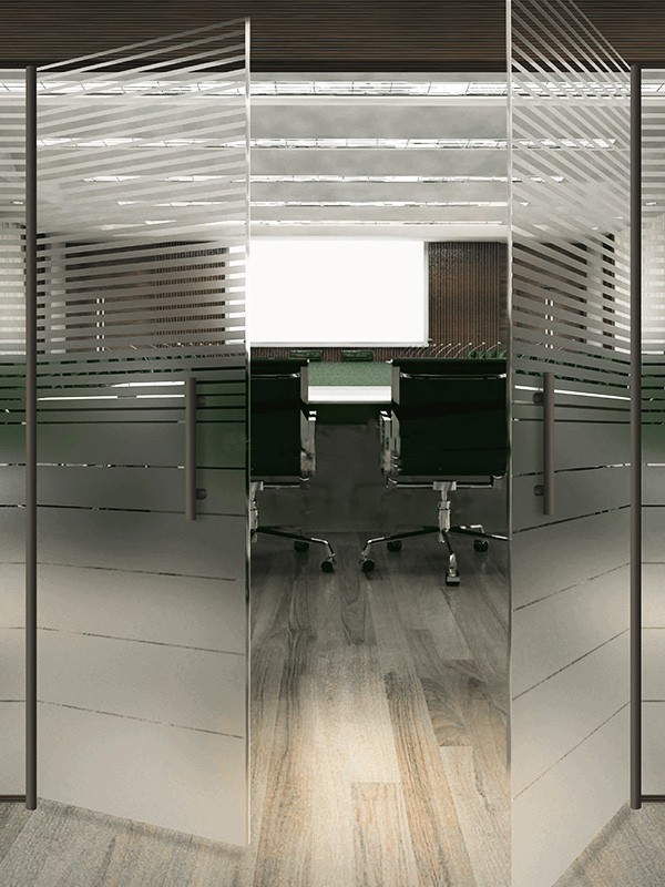 Стеклянные перегородки в офисе с закаткой пленки