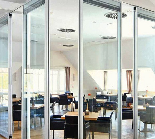 Стекло фиксировано в трансформирующихся стеклопакетах на алюминиевом профиле.